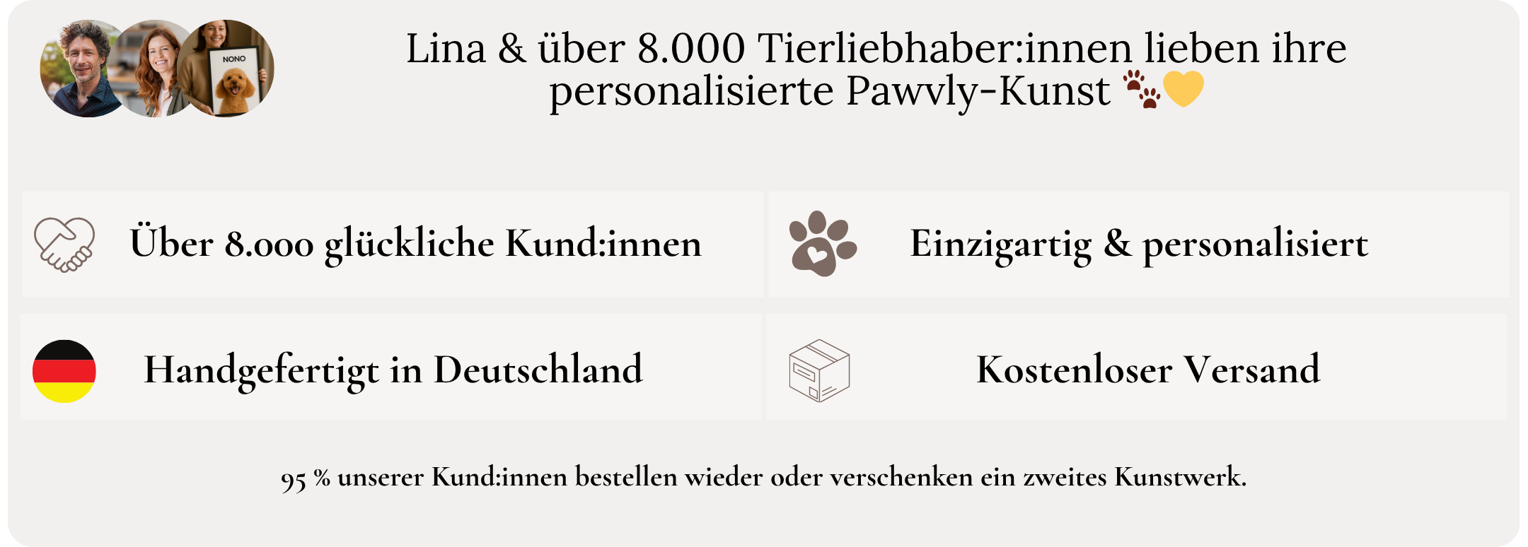 Über 8.000 glückliche Tierhalter:innen haben ihre Erinnerung bereits verewigt – jetzt bist du dran. 🐾✨
